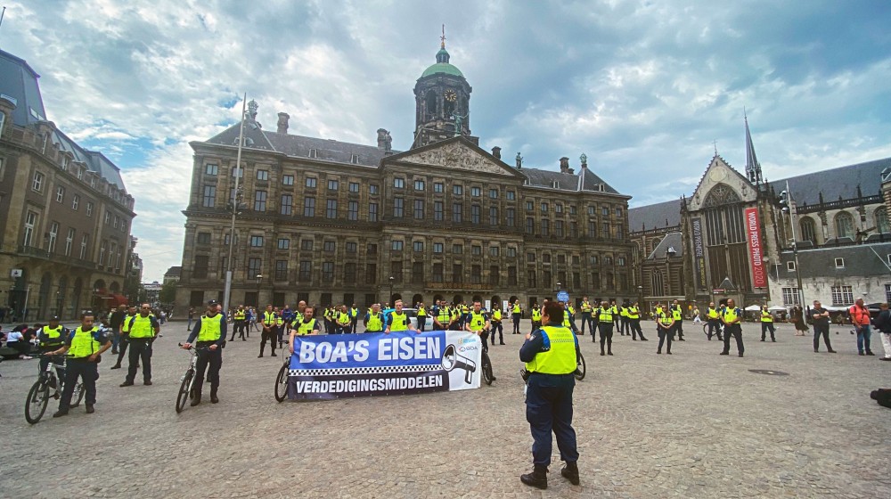 Tachtig boa’s protesteerden op 16 september op de Dam tegen het geweld waarmee zij tijdens hun werk te maken krijgen. In juni besloot minister Grapperhaus dat meer boa’s een wapenstok mogen gaan dragen, maar volgens de Nederlandse Boa Bond duurt het te lang voordat die wending iets oplevert. Voorzitter Ruud Kuin: ‘Elke dag dat we op een wapenstok moeten wachten, is er een te veel.’